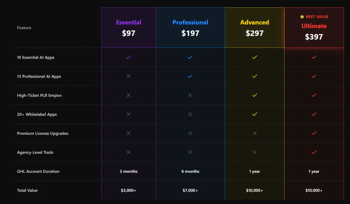 No! This is a one-time payment with lifetime access to all apps in your bundle. The only optional renewals are for the bonus GHL and JoinSecret accounts.